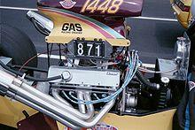 From 1976 to 1979, Jerry Grant "drove the most powerful car ever to appear in Indy car racing" - a turbocharged 209 cu in (3.4 L) two-valve, AMC Gen-2 block V8 engine producing 1,100 hp (820 kW; 1,115 PS) in his Eagle 74 chassis.[16][17] The car was fast on the straightways, but the engine's weight made corners more difficult to handle.[18] The engine utilized a 3 3&fras1;4 in (95.3 mm) bore and a flat plane 2.36 in (59.9 mm) stroke crankshaft.