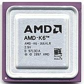 The AMD K6 is a superscalar P5 Pentium-class microprocessor, manufactured by AMD, which superseded the K5. The AMD K6 is based on the Nx686 microprocessor that NexGen was designing when it was acquired by AMD. Despite the name implying a design evolving from the K5, it is in fact a totally different design that was created by the NexGen team, including chief processor architect Greg Favor,[1][2] and adapted after the AMD purchase. The K6 processor included a feedback dynamic instruction reordering mechanism, MMX instructions, and a floating-point unit (FPU). It was also made pin-compatible with Intel's Pentium, enabling it to be used in the widely available "Socket 7"-based motherboards. Like the AMD K5, Nx586, and Nx686 before it, the K6 translated x86 instructions on the fly into dynamic buffered sequences of micro-operations. A later variation of the K6 CPU, K6-2, added floating-point-based SIMD instructions, called 3DNow!.