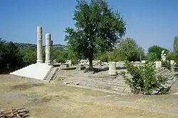 - ^ Rufus B. Richardson, "A Temple in Eretria" The American Journal of Archaeology and of the History of the Fine Arts, 10.3 (July - September 1895:326–337); Paul Auberson, Eretria. Fouilles et Recherches I, Temple d'Apollon Daphnéphoros, Architecture (Bern, 1968). See also Plutarch, Pythian Oracle, 16.