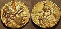 The Hittite testimony reflects an early form *Apeljōn, which may also be surmised from comparison of Cypriot Ἀπείλων with Doric Ἀπέλλων.[22] The name of the Lydian god Qλdãns /kʷʎðãns/ may reflect an earlier /kʷalyán-/ before palatalization, syncope, and the pre-Lydian sound change *y > d.[23] Note the labiovelar in place of the labial /p/ found in pre-Doric Ἀπέλjων and Hittite Apaliunas.