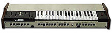 The Pro Soloist is monophonic and features a multiple-trigger, last note priority, transposable 37-key three-octave keyboard with aftertouch (i.e., pressure) sensitivity. The case is sheet metal with wooden side panels, and a fiberboard or Masonite bottom cover.