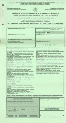 Early suggestions for an international temporary admission scheme were made during the 1900 and 1913 Congresses on Customs regulations, which were examined by Customs experts convened in 1923 under the auspices of the League of Nations but no positive result was achieved. In 1952, based on the recommendations already put forward in the ICCs' report on "Invisible Barriers to Trade and Travel" from 1949,[3] the contracting parties to GATT adopted an International Convention to Facilitate the Importation of Commercial Samples and Advertising Material proposed and drafted by the International Chamber of Commerce and which entered into force on 20 November 1955.[4][5][6][7][8] During the meetings of the Seventh Session Working Party, which prepared the text of the convention, and following a proposal by the French delegation, some consideration was given to the possibility of introducing a system of triptyques or carnets for samples of value carried by commercial travellers. It was suggested that such a system would alleviate the financial burdens and administrative formalities imposed upon firms sending representatives abroad.[9] The Working Party was informed that a scheme for duty-free admission of commercial travellers' samples under cover of a customs triptyque had been worked out for operation on a bilateral basis between Austria and Switzerland though it had not yet been put into force. On 1 March 1954, the Austrian Government informed the Executive Secretary of GATT that on 1 February 1954 the scheme for the duty-free admission of commercial travellers' samples was put into effect by the Customs Administrations of Austria and Switzerland. In accordance with this agreement commercial travellers and agents were permitted to import commercial samples from Switzerland into Austria, and conversely, temporarily duty-free under cover of a commercial samples triptyque without the deposit of import duties. The guarantees for the import duties are given by an Austrian insurance company for imports into Austria, and by a Swiss company for the imports into Switzerland. The application of this system was limited to collections of samples on which the customs duties would not exceed 60,000 Austrian schillings or 10,000 Swiss Francs. The period allowed for re-exportation was one year.[10][11]