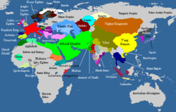 In 1206, Genghis Khan established a powerful dynasty among the Mongols of central Asia. During the 13th century, this Mongol Empire conquered most of the Eurasian land mass, including both China in the east and much of the old Islamic caliphate (as well as Kievan Rus') in the west. Hulagu Khan's destruction of Baghdad in 1258 is traditionally seen as the approximate end of the Golden Age.[41] Mongols feared that a supernatural disaster would strike if the blood of Al-Musta'sim, a direct descendant of Muhammad's uncle Abbas ibn Abd al-Muttalib,[42] and the last reigning Abbasid caliph in Baghdad, was spilled. The Shia of Persia stated that no such calamity had happened after the death of Husayn ibn Ali in the Battle of Kerbala; nevertheless, as a precaution and in accordance with a Mongol taboo which forbade spilling royal blood, Hulagu had Al-Musta'sim wrapped in a carpet and trampled to death by horses on 20 February 1258. The Caliph's immediate family was also executed, with the lone exceptions of his youngest son who was sent to Mongolia, and a daughter who became a slave in the harem of Hulagu.[43]