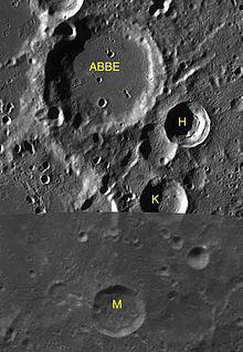 By convention these features are identified on lunar maps by placing the letter on the side of the crater midpoint that is closest to Abbe.