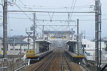 The station has two side platforms serving Track 1 and Track 2, with the station building connecting the platforms. The station building has automated ticket machines, TOICA automated turnstiles and a staffed ticket office.