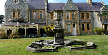 Abercrombie House was built in Bathurst, New South Wales, Australia in the 1870s by the Stewart family who were Bathurst pioneers. William Stewart came to Australia from England in 1825 as part of the colonisation of the penal colony (Australia). William was the Lieutenant Governor General of New South Wales; which meant he was hypothetically 2nd in command to running Australia. William was given land in Bathurst as a reward for doing his job well. William Stewart's eldest son James built Abercrombie House. The house is considered to be of extreme historical significance. It is listed on the National Trust Register. It is also on the New South Wales Heritage Register[1] and the Australian Heritage Database which describes it as "an outstanding example of Victorian Tudor style architecture. It is built of granite with sandstone dressing to the quoins and window surrounds, and there are two storeys together with an attic floor. The building's most striking feature is its array of curvilinear parapeted gables topped by iron finials."[2] The 50-acre (200,000 m2) land and house is currently owned by the Rex Henry Morgan Family. Since 1969 the Morgan family has made major restorations to the house. The House is currently occupied by Christopher Morgan and his family.