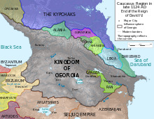 The Abkhazians call their homeland Аԥсны (Apsny, Aṗsny), popularly etymologised as "a land/country of the soul",[18] yet literally meaning "a country of mortals (mortal beings)".[19] It possibly first appeared in the seventh century in an Armenian text as Psin(oun), perhaps referring to the ancient Apsilians.[20] Although the term "Abkhazeti" first appeared in the Georgian annals, giving rise to the name Abkhazia. It was used to denote Abasgia proper and entire Western Georgia within the Kingdom of Georgia. In early Muslim sources, the term "Abkhazia" was generally used in the meaning of Georgia.[21][22] The Russian Абхазия (Abkhaziya) is adapted from the Georgian აფხაზეთი (Apkhazeti). Abkhazia's name in most languages are derived directly from the Russian.