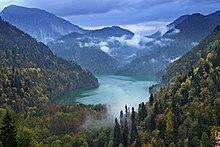Abkhazia[a] (/æbˈkɑːziə/ [10] or /æbˈkeɪziə/[11]) is a partially recognized state in the South Caucasus, recognised by most countries as part of Georgia, which views the region as an autonomous republic.[12][13][14][15][16] It lies on the eastern coast of the Black Sea, south of the Greater Caucasus mountains in northwestern Georgia. It covers 8,665 square kilometres (3,346 sq mi) and has a population of around 245,000. Its capital is Sukhumi.