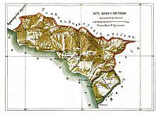 In the beginning of the 19th century, while the Russians and Ottomans were vying for control of the region, the rulers of Abkhazia shifted back and forth across the religious divide.[39] The first attempt to enter into relations with Russia was made by Keilash Bey in 1803, shortly after the incorporation of eastern Georgia into the expanding Tsarist empire (1801). However, the pro-Ottoman orientation prevailed for a short time after his assassination by his son Aslan-Bey on 2 May 1808.[40] On 2 July 1810, the Russian Marines stormed Sukhum-Kale and had Aslan-Bey replaced with his rival brother, Sefer-Bey (1810–1821), who had converted to Christianity and assumed the name of George. Abkhazia joined the Russian Empire as an autonomous principality, in 1810.[4] However, George's rule was limited and many mountain regions were as independent as before.[41] The next Russo-Turkish war strongly enhanced the Russian positions, leading to a further split in the Abkhaz elite, mainly along religious divisions. During the Crimean War (1853–1856), Russian forces had to evacuate Abkhazia and Prince Michael (1822–1864) seemingly switched to the Ottomans.[42]