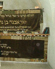 David had Abner buried in Hebron, as it states in 2 Samuel 3:31–32, "And David said to all the people who were with him, 'Rend your clothes and gird yourselves with sackcloth, and wail before Abner.' And King David went after the bier. And they buried Abner in Hebron, and the king raised his voice and wept on Abner's grave, and all the people wept."[3]