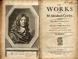 Abraham Cowley (/ˈkuːli/;[1] 1618 – 28 July 1667) was an English poet born in the City of London late in 1618. He was one of the leading English poets of the 17th century, with 14 printings of his Works published between 1668 and 1721.[2]