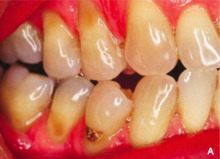 Different toothbrush types are more inclined to cause abrasion, such as those with medium or hard bristles. The bristles combined with forceful brushing techniques applied can roughen the tooth surface and cause abrasion as well as aggravating the gums.[11] Repetitive irritation to the gingival margin can eventually cause recession of the gums. When the gums recede, the root surface is exposed which is more susceptible to abrasion.[12] Comparatively, electric toothbrushes have less abrasive tendencies.[13]