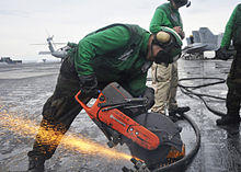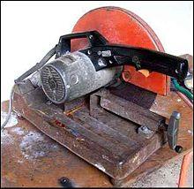 An abrasive saw, also known as a cut-off saw or chop saw, is a circular saw (a kind of power tool) which is typically used to cut hard materials, such as metals, tile, and concrete. The cutting action is performed by an abrasive disc, similar to a thin grinding wheel. Technically speaking this is not a saw, as it does not use regularly shaped edges (teeth) for cutting.