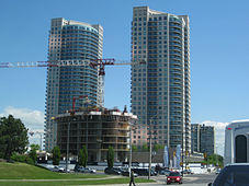 Absolute World is a residential condominium twin tower skyscraper complex in the five tower Absolute City Centre development in Mississauga, Ontario, Canada.[8] The project was built by Fernbrook Homes and Cityzen Development Group. With the first three towers completed (Absolute City Centre 1 and 2 and Absolute Vision), the last two towers (Absolute World 4 and 5) were topped off at 50 and 56 storeys.