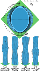 The larger of the two towers twists 209 degrees from the base to the top, making it very similar to Turning Torso in Malmö, Sweden.[12] The structural design was done by Sigmund Soudack & Associates Inc, a Toronto-based structural engineering firm. The tower has six levels of underground parking.[13]