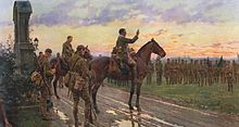 A depiction of the general absolution given to the Royal Munster Fusiliers by Father Francis Gleeson on the eve of the Battle of Aubers Ridge.
