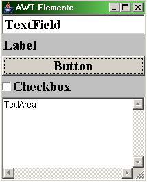- A basic set of GUI widgets such as buttons, text boxes, and menus. It also provides the AWT Native Interface, which enables rendering libraries compiled to native code to draw directly to an AWT