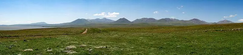The slopes of the Abul-Samsari Range are mainly covered with alpine meadows and grasslands. Forests are less common and are usually found at the lowest elevations of the Range (below1,900 m or 6,234 ft above sea level).
