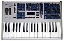 The Access Virus is a virtual analog synthesizer made by the German company Access Music GmbH.[1] It was first produced in 1997 and has since been upgraded frequently, with the company releasing new models about every two years. Early models include the Virus A, Virus B, and Virus C series, each available in various hardware configurations. In November 2005, the Virus TI series was released, including the 61-key Virus TI Keyboard and the 37-key Virus TI Polar. A small desktop model was released in February 2008 called the Virus TI Snow. A revision of the TI series called TI2 came out in March 2009, featuring faster digital signal processing (DSP) controllers, 16 voice polyphony, more effects in the effect section and a slightly changed design. The Virus series also has come out with two software plugin versions: TDM for Pro Tools and VST for TC Electronic Powercore series. The term Access Virus can be used to refer to any one of these synthesizers.