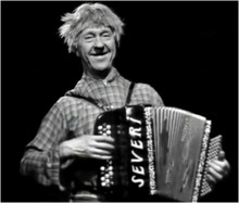 Most vaudeville theaters closed during the Great Depression, but accordionists during the 1930s–1950s taught and performed for radio. Included among this group was the concert virtuoso John Serry, Sr.[30][31][32] During the 1950s through the 1980s the accordion received significant exposure on television with performances by Myron Floren on The Lawrence Welk Show.[33] In the late 1950s and early 1960s, the accordion declined in popularity due to the rise of rock and roll.[34] The first accordionist to appear and perform at the Newport Jazz Festival was Angelo DiPippo. He can be seen playing his accordion in the motion picture The Godfather. He also composed and performed with his accordion on part of the soundtrack of Woody Allen's movie To Rome With Love. He was featured twice on The Tonight Show with Johnny Carson.