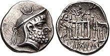 When the Parthian Arsacid king Mithridates I (c. 171–138 BC) took control of Persis, he left the Persian dynasts in office, known as the Kings of Persis, and they were allowed to continue minting coins with the title of mlk ("King").[134]