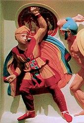 The events surrounding Cambyses' death and Bardiya's succession are greatly debated as there are many conflicting accounts.[60] According to Herodotus, as Bardiya's assassination had been committed in secret, the majority of Persians still believed him to be alive. This allowed two Magi to rise up against Cambyses, with one of them sitting on the throne able to impersonate Bardiya because of their remarkable physical resemblance and shared name (Smerdis in Herodotus' accounts[e]).[76] Ctesias writes that when Cambyses had Bardiya killed he immediately put the magus Sphendadates in his place as satrap of Bactria due to a remarkable physical resemblance.[77] Two of Cambyses' confidants then conspired to usurp Cambyses and put Sphendadates on the throne under the guise of Bardiya.[78] According to the Behistun Inscription, written by the following king Darius the Great, a magus named Gaumata impersonated Bardiya and incited a revolution in Persia.[59] Whatever the exact circumstances of the revolt, Cambyses heard news of it in the summer of 522 BC and began to return from Egypt, but he was wounded in the thigh in Syria and died of gangrene, so Bardiya's impersonator became king.[79][f] The account of Darius is the earliest, and although the later historians all agree on the key details of the story, that a magus impersonated Bardiya and took the throne, this may have been a story created by Darius to justify his own usurpation.[81] Iranologist Pierre Briant hypothesises that Bardiya was not killed by Cambyses, but waited until his death in the summer of 522 BC to claim his legitimate right to the throne as he was then the only male descendant of the royal family. Briant says that although the hypothesis of a deception by Darius is generally accepted today, "nothing has been established with certainty at the present time, given the available evidence".[82]