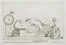 The relationship between Achilles and Patroclus is a key element of the stories associated with the Trojan War. Its exact nature has been a subject of dispute in both the Classical period and modern times. In the Iliad, Homer describes a deep and meaningful relationship between Achilles and Patroclus, where Achilles is tender toward Patroclus but callous and arrogant toward others. Homer never explicitly casts the two as lovers,[1][2] but they were depicted as lovers in the archaic and classical periods of Greek literature, particularly in the works of Aeschylus, Aeschines and Plato.[3][4]