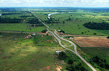 In the 1960s, the second cycle of efforts to accelerate the progress of the Amazon area was begun with the Superintendency of the Development of the Amazon (Superintendência do Desenvolvimento da Amazônia or SUDAM, 1966).[40] Better networking of regional sub-sectors within the state was sought out, thus connecting the branch lines of the Transamazônica, which connected Rio Branco and Brasiléia, on the upper course of the Acre River, and Cruzeiro do Sul, on the banks of the Juruá, crossing the valleys of the Purús and the Tarauacá. Planning politics developed, therefore, destined to correct the demographic, economic, and political distortions of national integration.