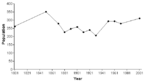 In 2017, there were 143 households in the civil parish.[40] In 2006, the total population of the civil parish was estimated as 340.[31] In the 2001 census, the recorded population was 311.[41] Although this represents an increase of around 20% from 1901, the population remains below the 1851 figure (see graph). In 2001, 53.7% of the population were female and 98.4% of householders were white.[41][42] Residents had an average (median) age of 38.0 years, with 23.2% aged under 16 and 12.2% aged 75 and over.[41] The parish had a total of 124 dwellings, with an average household size of 2.55. 65.3% of dwellings were owner occupied; 21.0% were rented from the council or a housing association and 12.1% from a private landlord.[33] 77.9% of households owned one or more cars.[42] Of those aged 16–74, 45.3% held few or no academic qualifications (less than five GCSE passes or equivalent).[38] According to the census, 1.5% of those aged 16–74 were unemployed and 27.9% were economically inactive.[38]