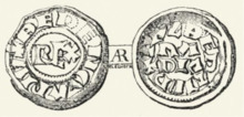 - ^ J. G. Pfister, "On a Very Rare Silver Coin (denaro d'argento) of Berengarius II., King of Italy, with His Son Albertus (Adalbertus) as Coregent, A.D. 950–962", The Numismatic Chronicle and Journal of the Numismatic Society, vol. 18 (1855–56), pp. 57–75.