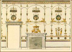 It was typical of Adam style to combine decorative neo-Gothic details into the classical framework. So-called "Egyptian" and "Etruscan" design motifs were minor features.