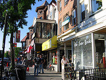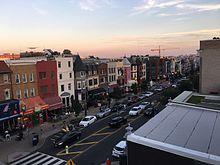 Adams Morgan is a neighborhood in Northwest Washington, D.C., centered at the intersection of 18th Street NW and Columbia Road, about 1.5 miles (2.54 km) north of the White House. Known for its broad mix of cultures and activities, Adams Morgan contains together both residential and entertainment areas, and has a vibrant nightlife with numerous bars and restaurants, particularly along 18th Street NW. Columbia Road also holds a busy stretch of shops and businesses.[1] As a distinct, named area, Adams Morgan came into being in the late 1950s, when it drew together several smaller and older neighborhoods that were first developed in the latter 19th and early 20th centuries. It is today composed primarily of well-made rowhouses; and classically-styled mid-rise apartment buildings, many of which are now co-ops and condos; along with various commercial structures.