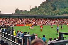 Originally called the Valley End, the BMI Healthcare Terrace is the home supporters' end for football matches, and the only remaining standing accommodation in the stadium. The original licensed capacity of the terrace was 2,136; however, this was reduced by the club to 1,717 to maintain a total licensed capacity for the whole stadium of 10,000 after the extension of the Hillbottom Road end by 1,000 seats in 2001.[5] After the Sports Grounds Safety Authority re-evaluated the extent of the viewing area on the Valley End that was permitted to be included in the total capacity calculation in October 2015, the terrace's maximum capacity was provisionally reduced from 2,131 (officially licensed 1,717) to 1,494[6] pending remedial work to be carried out by the club in the near future.