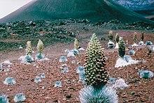 Hawaii is also the site of a separate major floral adaptive radiation event: the Hawaiian lobelioids. The Hawaiian lobelioids are significantly more speciose than the silverswords, perhaps because they have been present in Hawaii for so much longer: they descended from a single common ancestor who arrived in the archipelago up to 15 million years ago.[21] Today the Hawaiian lobelioids form a clade of over 125 species, including succulents, trees, shrubs, epiphytes, etc.[22] Many species have been lost to extinction and many of the surviving species endangered.