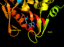 The core is highly conserved across many PRTases. The hood, which contains the adenine binding site, has more variability within the family of enzymes. A 13-residue motif comprises the PRPP binding region and involves two adjacent acidic residues and at least one surrounding hydrophobic residue.[13]