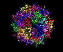 - ^ Xie Q, Bu W, Bhatia S, Hare J, Somasundaram T, Azzi A, Chapman MS (August 2002). "The atomic structure of adeno-associated virus (AAV-2), a vector for human gene therapy". Proceedings of the National Academy of Sciences of the United States of America. 99 (16): 10405–10. Bibcode:2002PNAS...9910405X. doi:10.1073/pnas.162250899. PMC 124927. PMID 12136130.