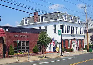 A town may contain one or more villages.[38] Many towns have no villages. Five towns are coterminous with their single village: Green Island in Albany County; East Rochester in Monroe County; and Scarsdale, Harrison and Mount Kisco in Westchester County. When such an entity is formed, officials from either unit of government may serve in both village and town governments simultaneously.[20] A referendum is held to decide whether residents prefer a village-style or town-style government, which will then function primarily as a village or town but will perform some of the functions of the other form.[39]