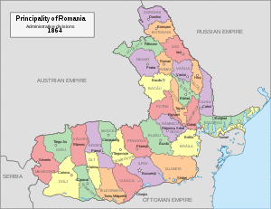 After modern Romania was formed in 1859 through the union of Wallachia and rump Moldavia, and then extended in 1918 through the union of Transylvania, as well as Bukovina and Bessarabia (parts of Moldavia temporarily acquired by the Habsburgs, 1775–1918, respectively the Russian Tsars, 1812–1917), the administrative division was modernized using the French departments system as an example. With the exception of the half of the Communist period, this system remained in place. Since 1864, for each județ there exists a prefect (from the Latin praefectus), a subordinate of the Ministry of Internal Affairs, who is the representative of the government in the county, and the head of the local administration in the areas not delegated to local authorities.[4] Until 1948, each județ was further divided into a number of plăși (singular plasă), with each administered by a pretor (from the Latin praetor), appointed by the prefect.[5]