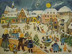 An Advent calendar is a special calendar used to count the days of Advent in anticipation of Christmas.[1] Since the date of the First Sunday of Advent varies, falling between November 27 and December 3 inclusive, many Advent calendars, especially those that are reusable, often begin on December 1, although those that are produced for a specific year often include the last few days of November that are part of the liturgical season.[2][3] The Advent calendar was first used by German Lutherans in the 19th and 20th centuries.[4][5]