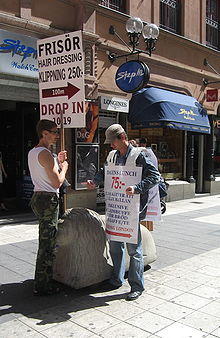 The marketing and advertising literature has many different definitions of advertising, but it is possible to identify common elements or themes within most of these definitions. The American Marketing Association (AMA) defines advertising as "the placement of announcements and persuasive messages in time or space purchased in any of the mass media by business firms, nonprofit organizations, government agencies, and individuals who seek to inform and/ or persuade members of a particular target market or audience about their products, services, organizations, or ideas".[2] The American Heritage Dictionary defines advertising as "the activity of attracting public attention to a product or business, as by paid announcements in the print, broadcast, or electronic media".[3] Selected marketing scholars have defined advertising in the following terms: "any non-personal communication that is paid for by an identified sponsor, and involves either mass communication viz newspapers, magazines, radio, television, and other media (e.g., billboards, bus stop signage) or direct to-consumer communication via direct mail".[4] and "the element of the marketing communications mix that is non-personal, paid for by an identified sponsor, and disseminated through mass channels of communication to promote the adoption of goods, services, persons, or ideas."[5] One of the shortest definitions is that advertising is "a paid, mass-mediated attempt to persuade".[6]