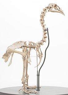 The adzebills were about 80 cm in length with a weight of 18 kg, making them about the size of small moa (with which they were initially confused on their discovery) with enormous downward-curving and pointed bill, and strong legs.[9] They were flightless and had extremely reduced wings, smaller than those of the dodo compared to the birds' overall size, and with a uniquely reduced carpometacarpus.[10]