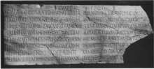 While on her pilgrimage to Jerusalem in spring of 438, Eudocia stopped in Antioch, and during her stay she addressed the senate of that city in Hellenic style (i.e., an encomium cast in Homeric hexameters) and distributed funds for the repair of its buildings.[6][16] She was very conscious of her Greek heritage, as demonstrated in her famous address to the citizens of Antioch where she included the line "ὑμετέρης γενεής τε καὶ αἵματος εὔχομαι εἶναι" ("Of your proud line and blood I claim to be").[6][16][17][18] The last words of Eudocia's oration brought down the house, which resulted in the citizens of Antioch celebrating the Empress Eudocia's Christian Hellenism and commemorating her by erecting a golden statue of her in the curia and a bronze statue in the museum.[17][18][19] On her return, her position was undermined by the jealousy of Pulcheria and the groundless suspicion of an intrigue with her protégé, Paulinus, the master of the offices.[20]