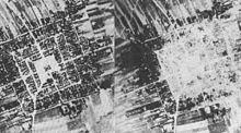 Two further 1,000 bomber raids were executed over Essen and Bremen, but to less effect than the destruction at Cologne. The effects of the massive raids using a combination of blockbuster bombs and incendiaries created firestorms in some cites.[55] The most extreme examples were caused by the bombing of Hamburg in Operation Gomorrah (45,000 dead),[56][57] and the bombings of Kassel (10,000 dead),[58][59][60] Darmstadt (12,500 dead),[60] Pforzheim (21,200 dead),[61] Swinemuende (23,000 dead),[62][63] and Dresden (25,000 dead[64][65]).