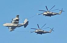 Helicopter in-flight refueling (HIFR) is a variation of aerial refueling when a naval helicopter approaches a warship (not necessarily suited for landing operations) and receives fuel through the cabin while hovering. Alternatively, some helicopters equipped with a probe extending out the front can be refueled from a drogue-equipped tanker aircraft in a similar manner to fixed-wing aircraft by matching a high forward speed for a helicopter to a slow speed for the fixed-wing tanker.