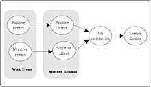Affective events theory (AET) is a model developed by organizational psychologists Howard M. Weiss (Georgia Institute of Technology) and Russell Cropanzano (University of Colorado) to explain how emotions and moods influence job performance and job satisfaction.[1] The model explains the linkages between employees' internal influences (e.g., cognitions, emotions, mental states) and their reactions to incidents that occur in their work environment that affect their performance, organizational commitment, and job satisfaction. The theory proposes that affective work behaviors are explained by employee mood and emotions, while cognitive-based behaviors are the best predictors of job satisfaction.[2] The theory proposes that positive-inducing (e.g., uplifts) as well as negative-inducing (e.g., hassles) emotional incidents at work are distinguishable and have a significant psychological impact upon workers' job satisfaction.[2][3] This results in lasting internal (e.g., cognition, emotions, mental states) and external affective reactions exhibited through job performance, job satisfaction, and organizational commitment.[3]