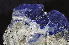 Afghanite on marble, Sar-e-Sang, Badakhshan, Afghanistan. Size: 3.4 x 3.1 x 2.6 cm. | |