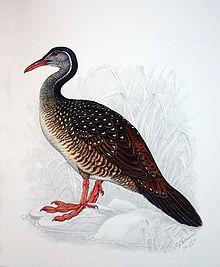 The African finfoot (Podica senegalensis) is an aquatic bird from the family Heliornithidae (the finfoots and sungrebe). The species lives in the rivers and lakes of western, central, and southern Africa.