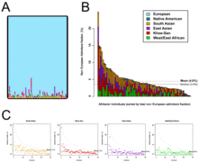 - ^ a b c Hollfelder N, Erasmus JC, Hammaren R, Vicente M, Jakobsson M, Greeff JM; et al. (2020). "Patterns of African and Asian admixture in the Afrikaner population of South Africa". BMC Biol. 18 (1): 16. doi:10.1186/s12915-020-0746-1. PMC 7038537. PMID 32089133.