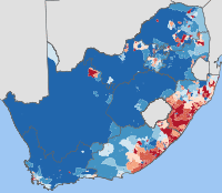 Afrikaners make up approximately 58% of South Africa's white population, based on language used in the home. English speakers – an ethnically diverse group – account for closer to 37%.[9] As in Canada or the United States, most modern European immigrants elect to learn English and are likelier to identify with those descended from British colonials of the nineteenth century.[42] Aside from coastal pockets in the Eastern Cape and KwaZulu-Natal they remain heavily outnumbered by those of Afrikaans origin.[43]