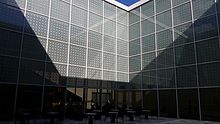 Commissioned by the Aga Khan, the museum building and the spaces around were designed to be seen as a celebration and mysteries of light. The rectilinear building is oriented forty-five degrees to solar north where all its sides are exposed to the sun. The form has been chiseled to create a concaved angular profile that is also a natural expression of the two level building. Clad in sandblasted white Brazilian granite, the surfaces of the building are set in motion in a constant interplay with the sun in light and deep shadows. The effect is similar to a sundial.[21]